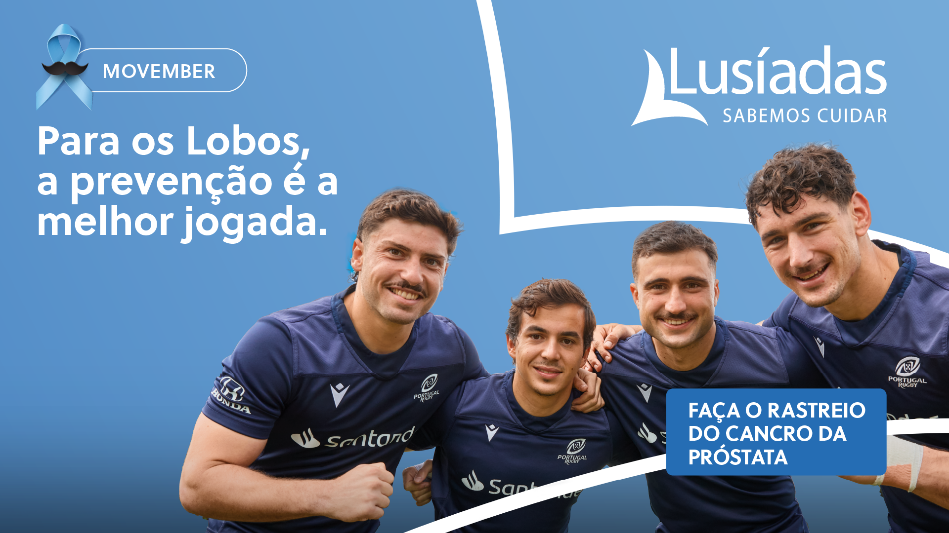 No mês de sensibilização para a importância do rastreio do cancro da próstata, a Seleção Nacional de Rugby entra em campo para protagonizar uma campanha para a Lusíadas Saúde que tem como mote “Para os Lobos, a prevenção é a melhor jogada”. Com esta iniciativa, em que os jogadores passam a bola entre eles consoante o bigode que têm, os “Lobos” reforçam a importância de um estilo de vida saudável e de exames regulares de rastreio do cancro da próstata.